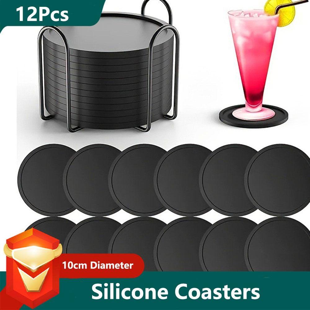 12Pcs Heat Resistant Drink Coasters 10cm Diameter Cup Mats Silicone Coasters Home Use
