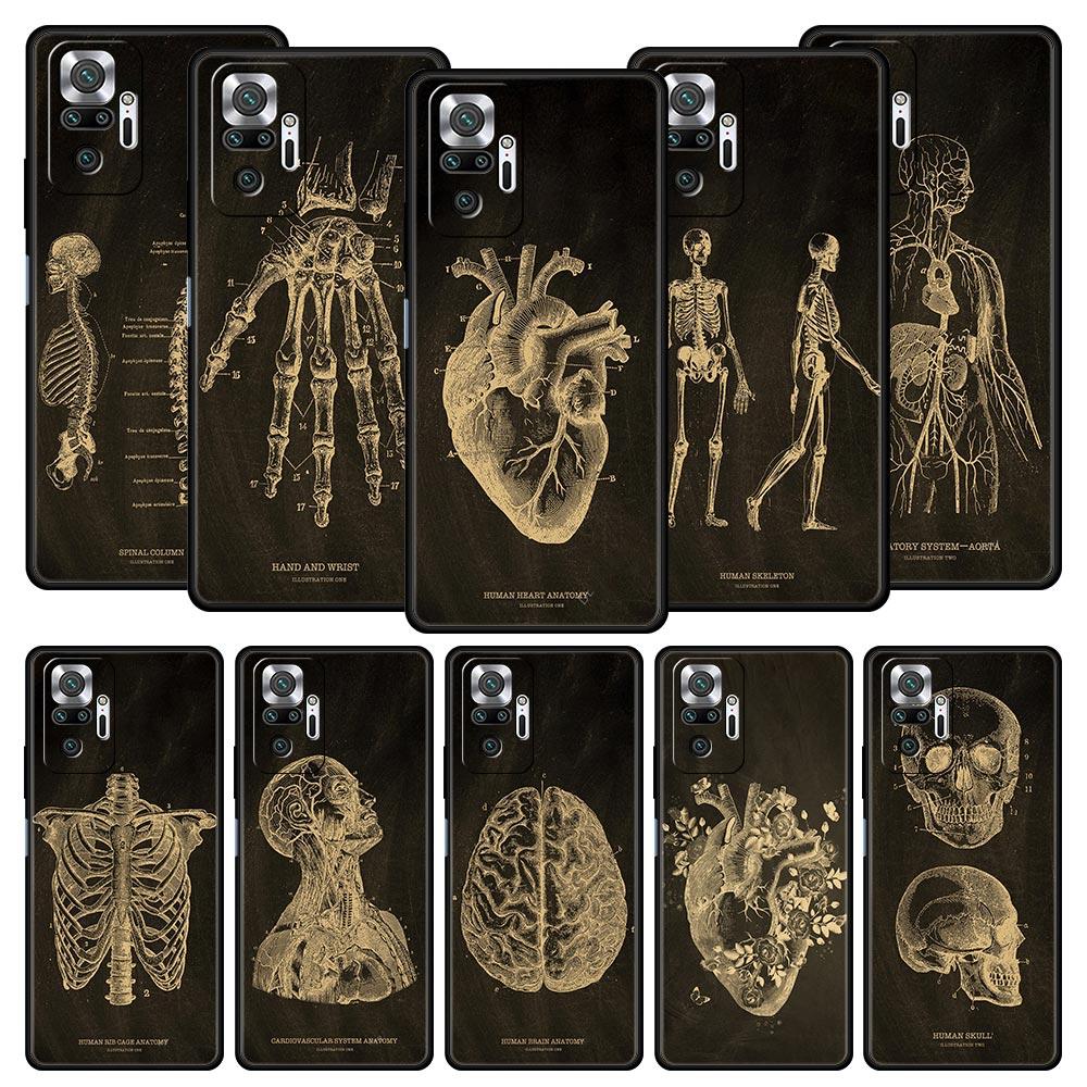 Anatomy Skeleton Chalkboard Body Heart Phone Case For Xiaomi Redmi Note 14 13 5G 10 11 12 Pro Plus 4G 14C 13C 12C 10C Cover