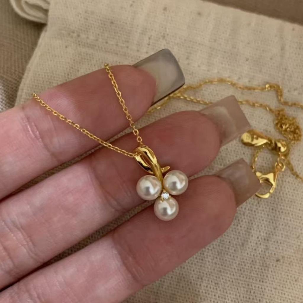 2026 French Pearl Grape String Pendant Necklace Exquisite and Simple Clover Premium Clavicle Chain Unique Neck Chain Female