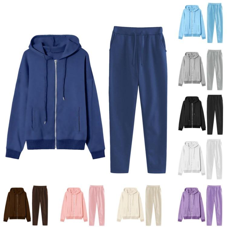 Fresh Casual Long Sleeve Hooded Sweatshirt Set Women Fashion Solid Color Pullover