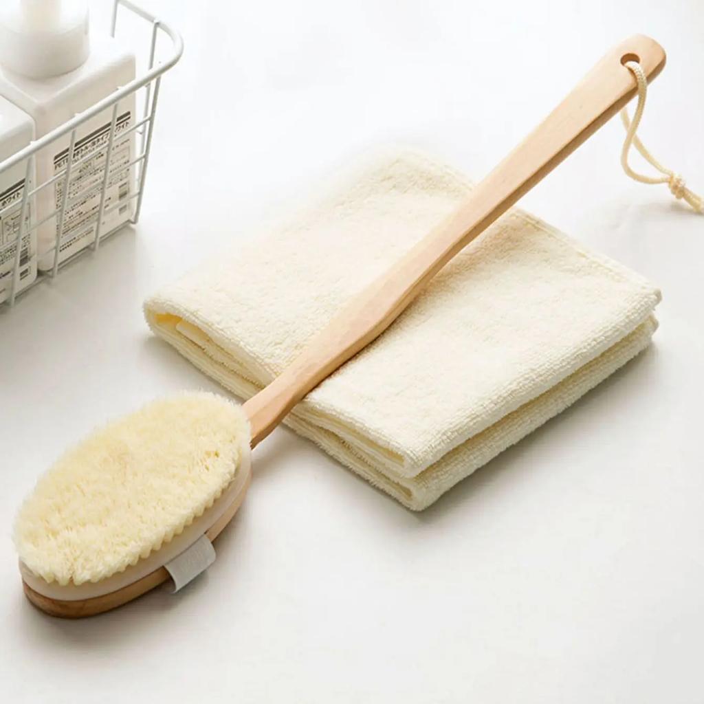 1PC - Wooden Long Handle Detachable Back Rubbing Massage Bath Brush