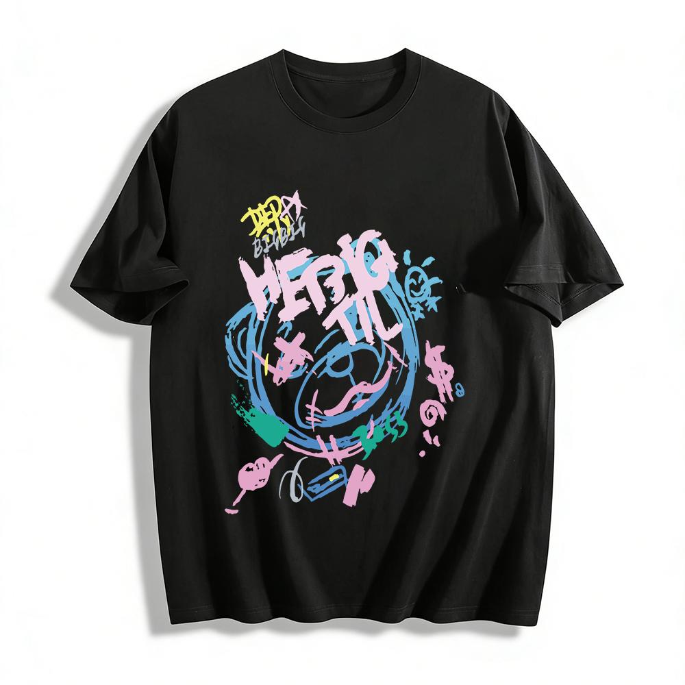 Graffiti Style Fun Letter Print Casual T-Shirt Unisex Loose Breathable Daily Wear Top Pure cotton T-shirt