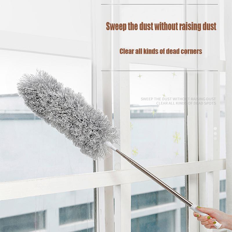 off-white Multifunctional Portable Feather Duster Household Retractable Dusting Duster Stainless Steel Long Handle For Cleaning