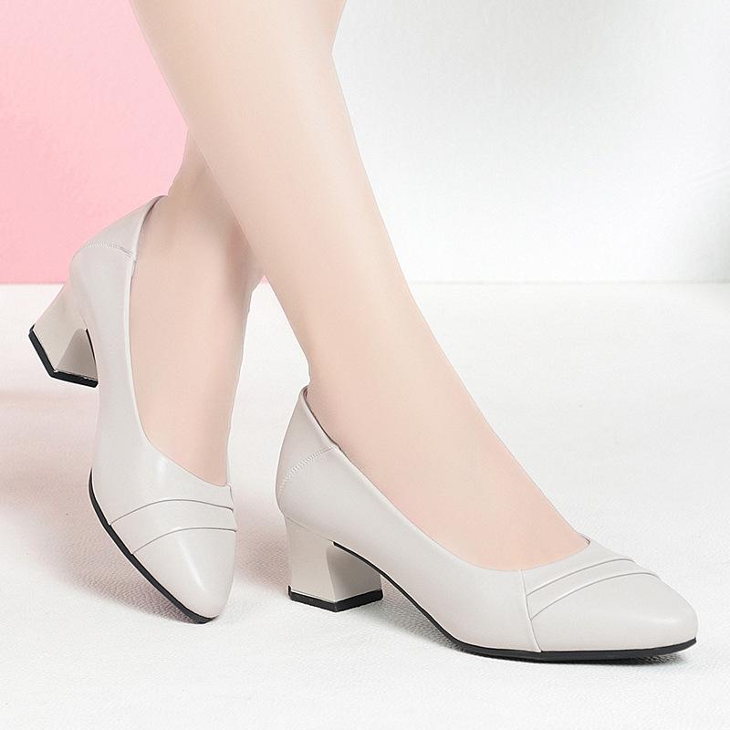 Coarse heel single shoes women's new spring and autumn women's shoes middleaged women's mother shoes soft leather soft sole comfortable leather shoes