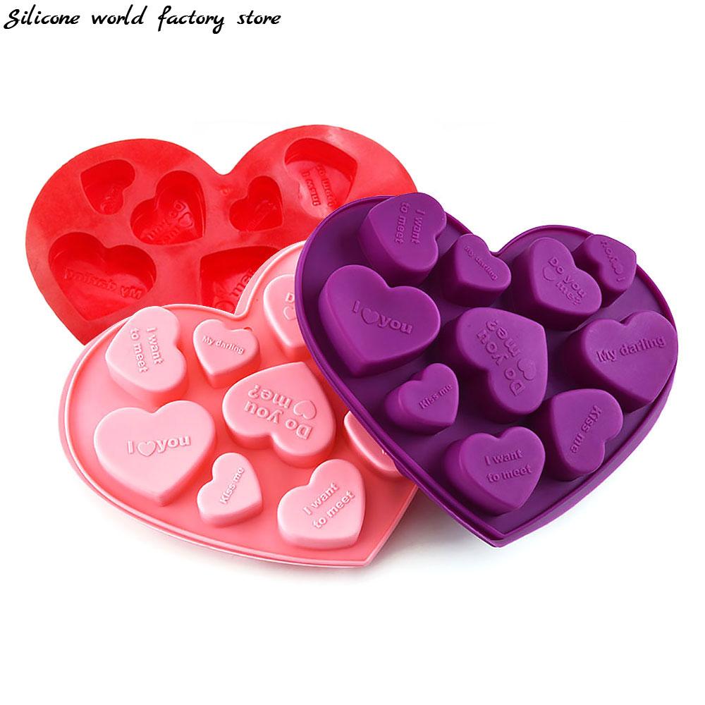 Siliconen World Silicone Chocolate Mold English Heart-shaped Cookie Fondant Cake Decorating Tools DIY Baking Molds Baking Pan