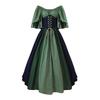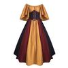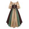 European and American Medieval Retro Color-Blocking Patchwork Dress with Flying Sleeves, Tie-Waist, and Large Hem, Performance Dress Factory