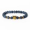 Leopard Head Beaded Bracelets for Men Women 8mm Rock Lava Stone Crown King Lion Charm Bracelet Set Natural Stone Elastic Jewelry