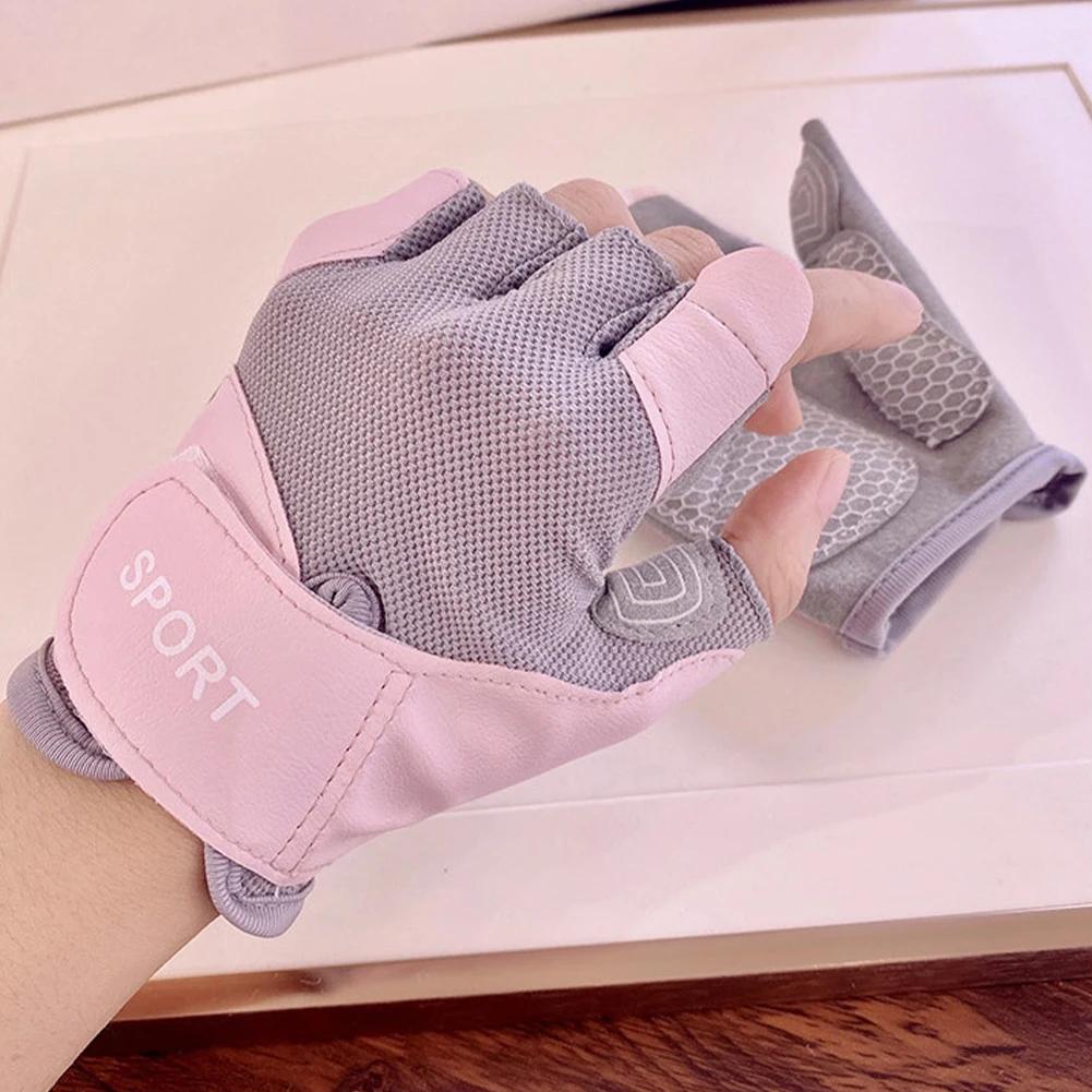 For Yoga Training Cycling 1Pair Women's Half Finger Fitness Anti-slip Gloves Wear-resistant Shock Absorption Workout Gloves