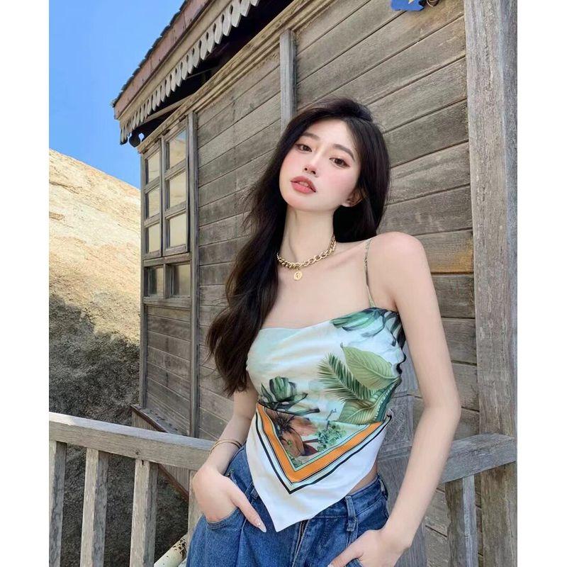Women's Camisole for Layering or Wearing Alone, Summer Vintage Style, Stylish Back Design, Square Scarf-Style Tube Top