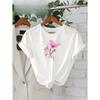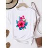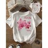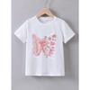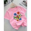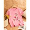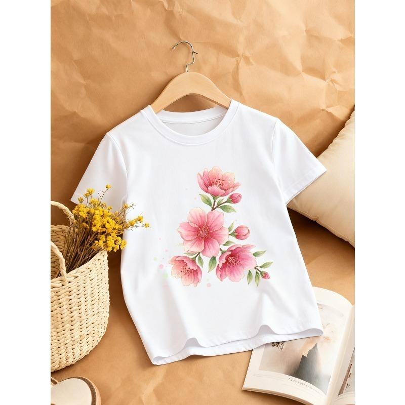 European sizes Girl's Round Neck T-Shirt with Fresh Pink Floral Pattern, Comfortable Casual Style, an Excellent Choice for a Natural Look
