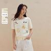 INMAN Women's Floral Embroidered Xinjiang Cotton Short Sleeve Cardigan
