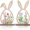 Wooden Easter Bunny Decor 2 Pieces Holiday Decoration Spring Table Centerpiece for Home Office Apartment Living Room Bedroom