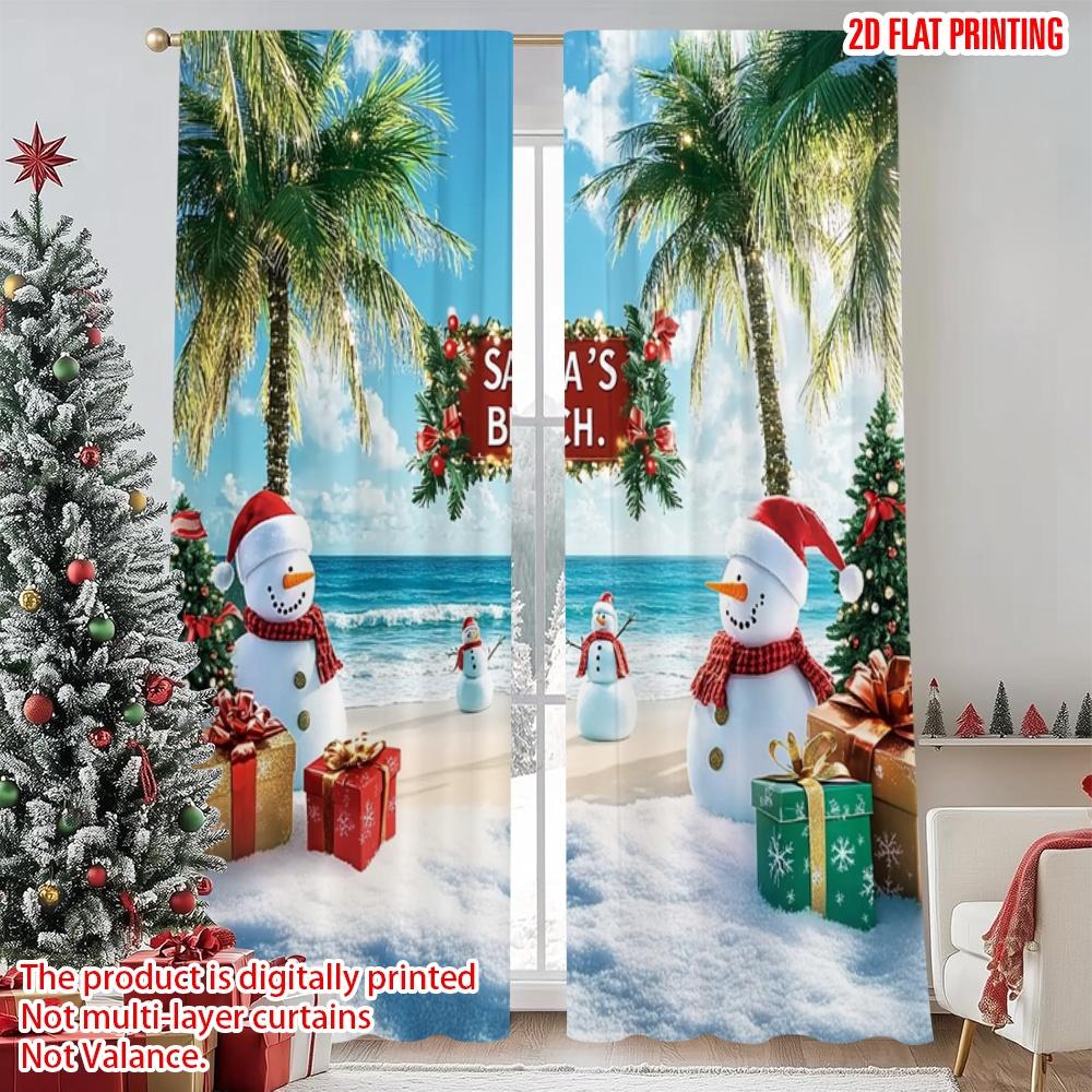 Set Of 2 Flat Printing Christmas Party Curtain Santa Claus Beach Tropical Snowman Polyester Without Electricity Spring Perfect Made