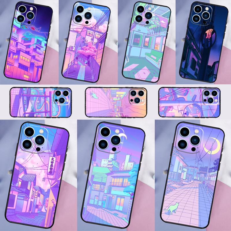 Pastel Japan Kyoto City Case For Oppo A18 A98 A38 A58 A78 A60 A80 A40 A96 A76 A16 A94 A74 A54 A15 A17 A57 A77 A5 Pro