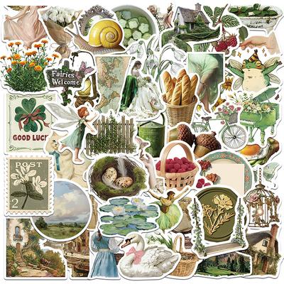 50 Adet Kendin Yap Dekorasyon Scrapbooking Okul Malzemeleri Vintage Kırsal Yaşam PVC Yapışkanlı Etiket Estetik Çocuk Kırtasiyesi