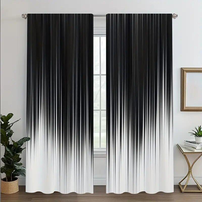Gradient Stripes Black White Print Curtains Pole Bag Home Decoration Room Set Of 2 Made Polyester
