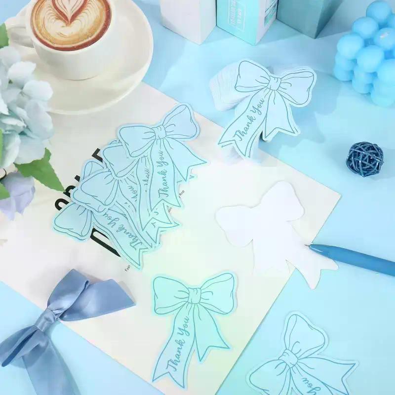 50pcs Bow DIY Handwritten Family Party Gift Card Child Birthday Gift Card Restaurant Business Mini Thank You Card