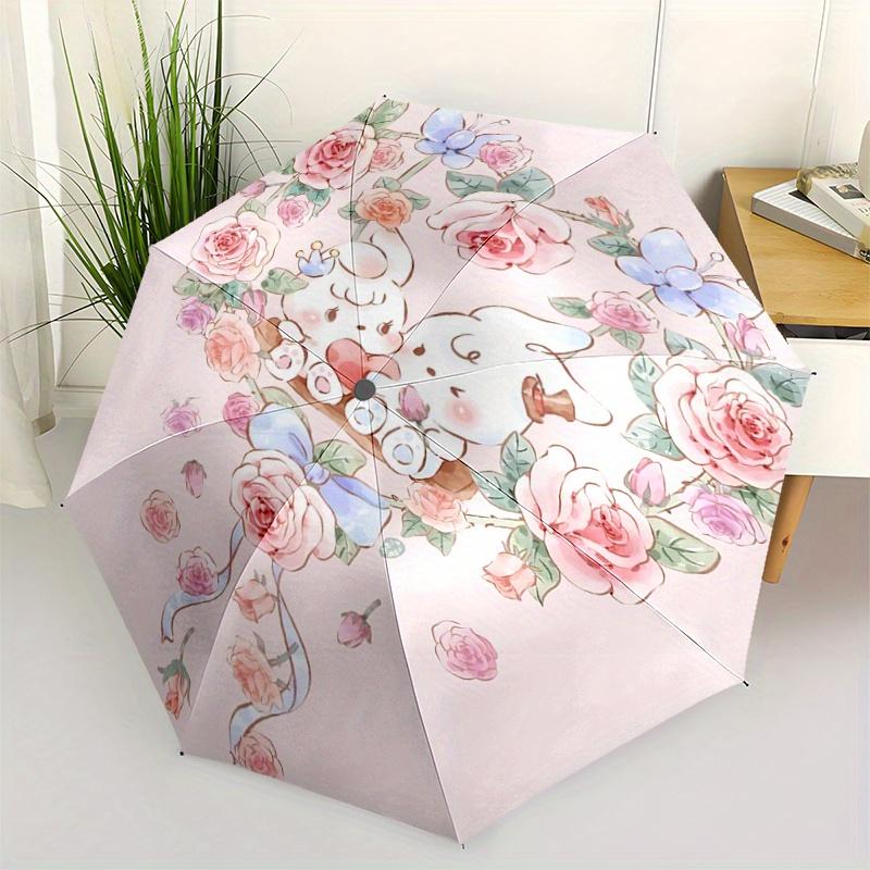 1pc Love Flowers & Bunnies Fully Automatic Folding Portable Umbrella, 8 Iron Frames, Three-Fold Design, Suitable for All Seasons, Suitable f