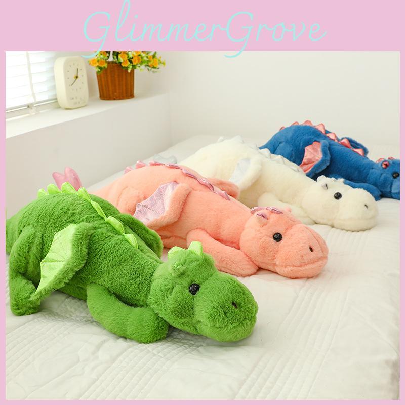 This plush toy features a cute, winged fire-breathing dragon design with colorful options including pink, blue, white, and green. Made of short-pile plush and filled with soft PP cotton, it measures from 70cm to 130cm in height. Ideal for display or as a comforting companion, it supports gentle cleaning with a damp cloth.