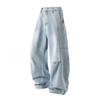 Men Streetwear Black Baggy Pants Button Fly Wide Leg Denim Jeans