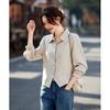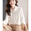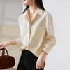Women Casual Khaki Button Up Shirt Lantern Sleeve Office Top