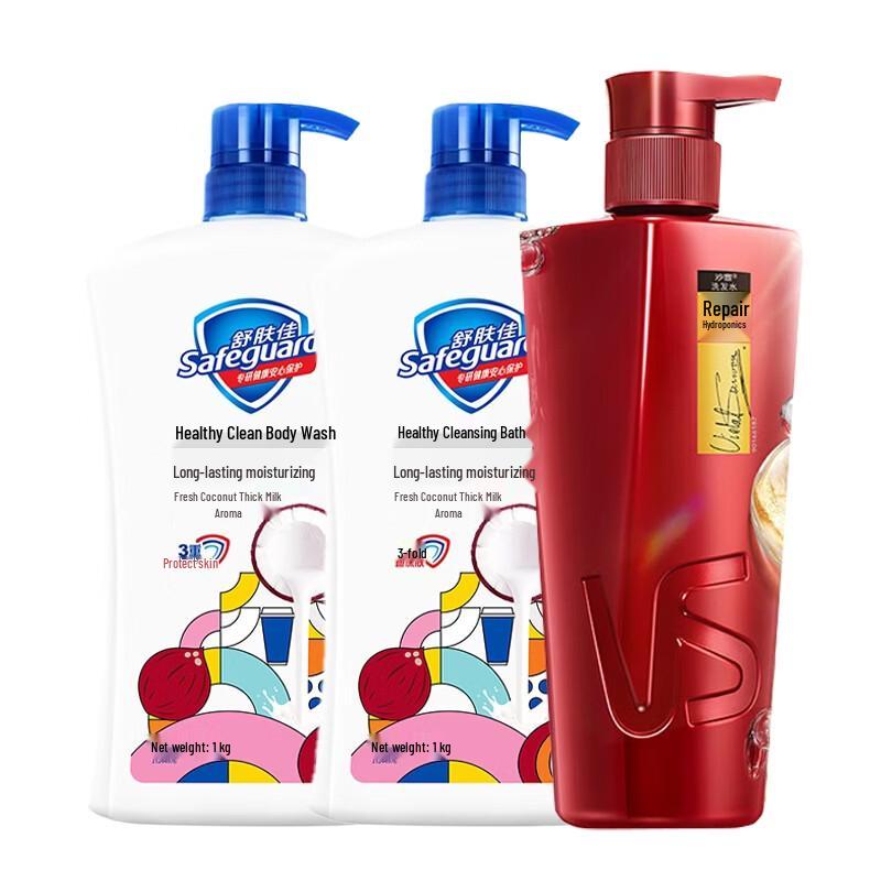Safeguard Coconut Milk Scent Body Wash & Vidal Sassoon Shampoo Bundle