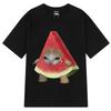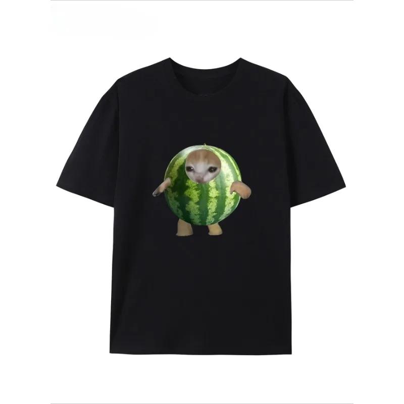 Women's Casual T-shirt with Cute Watermelon Cat Print Design Short Sleeves Round Neck Soft and Comfortable for Street Wear