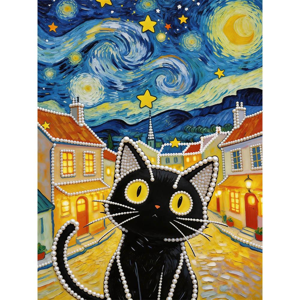 DIY Starry Night Cat Pearl Art Painting for Adults/Beginners Gift Home Decor Pearl Gem Paintings Picture Arts Craft 30x40cm Without Frame