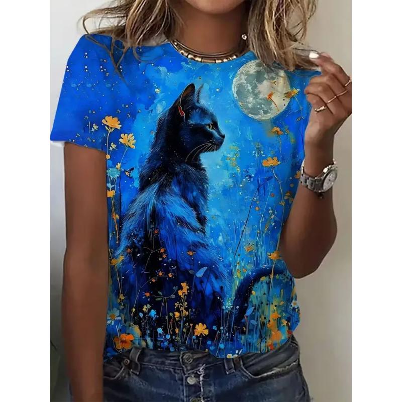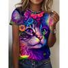 Fashion Women's Crew Neck T-Shirt Crew Neck Short Sleeve 3D Color Printing