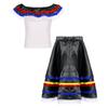 Girls Mexican Dress Set Off Shoulder Ruffled Top Elastic Waistband Lace Ribbon Trim Skirt