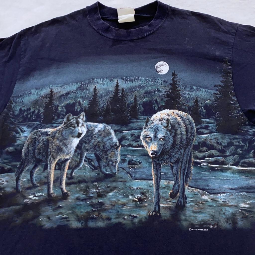 vintage 90s WOLF MOON DOUBLE-SIDED NATURE T-Shirt LARGE wild animal