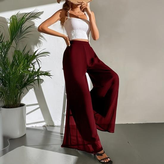 Women Pants Elastic High Waist Wide Leg Loose Fit Casual Trousers Summer Chiffon Long