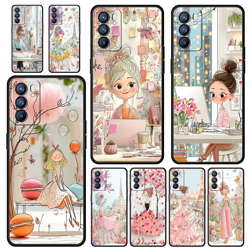 Cartoon Girl Phone Case For Oppo A17 A31 A54 A57 A78 A79 A98 Find X5 X6 Reno 6 7 8 10 11 12 13 F Pro 5G Soft TPU Cover Funda Bag