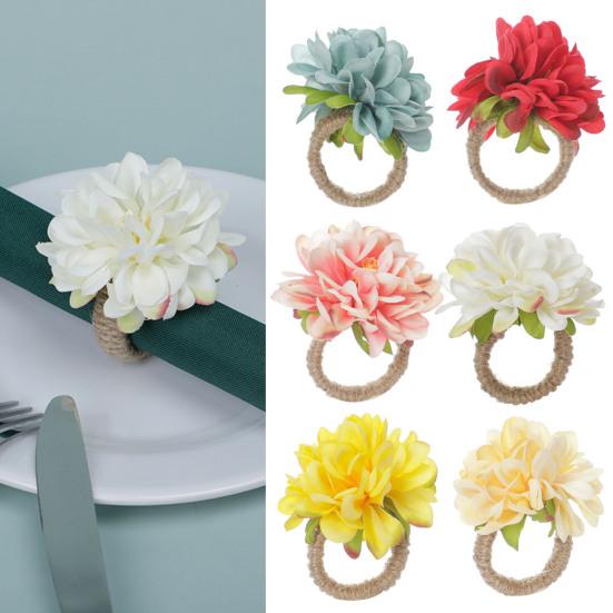 Artificial Flower Napkin Ring Farmhouse Rustic Jute Rope Dinner Napkin Holder Buckle Birthday Wedding Party Hotel Restaurant Table Decoration