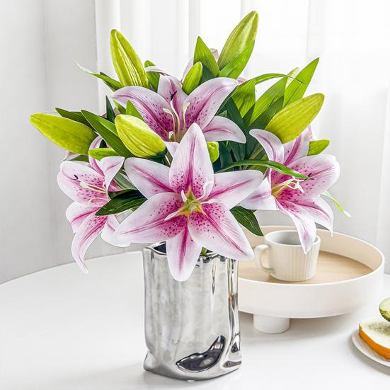 Artificial Lily Flowers with 2 Heads Full Bloom And 1 Bud Long Stem Fake Lilies Bouquet for Wedding Floral Arrangements Spring Home Table Centerpiece