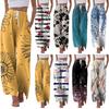 Women's Summer Cotton And Linen Printed Pants Women's Fashion Loose Casual High Waisted Wide Leg Pants Casual Cropped Pants