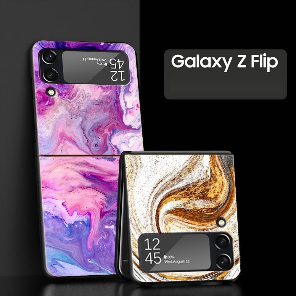Vintage Marble Hard PC Phone Case For Samsung Galaxy Z Flip 7 6 5 4 Black Cover For Galaxy Z Flip 3 Foldable Shell Fundas Capas