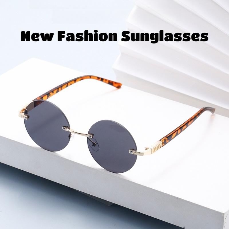 New Vintage Round Frameless Sunglasses Unisex Fashionable Trendy UV-Protective Eyewear Stylish Casual Vacation Sunglasses