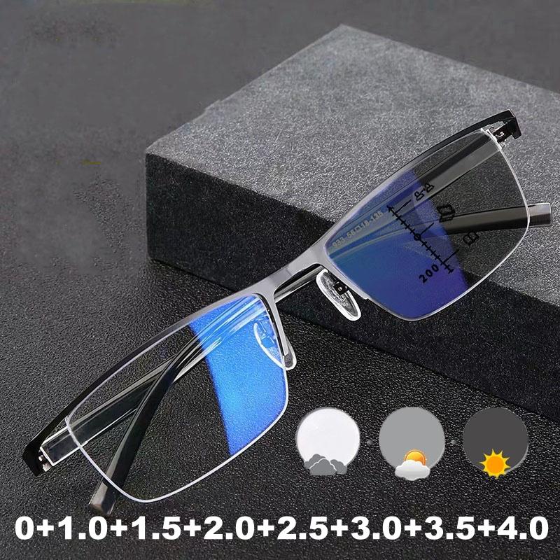 Men Women Half Frame Photochromic Reading Glasses Trendy Progressive Multifocal Glasses Unisex Fashionable Presbyopia 0+1.0+4.0