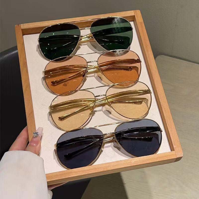 New Women's Trendy Large Frame Pilot Sunglasses Men's Retro Fashion Metal Glasses UV Protection Shades UV400 Eyewear