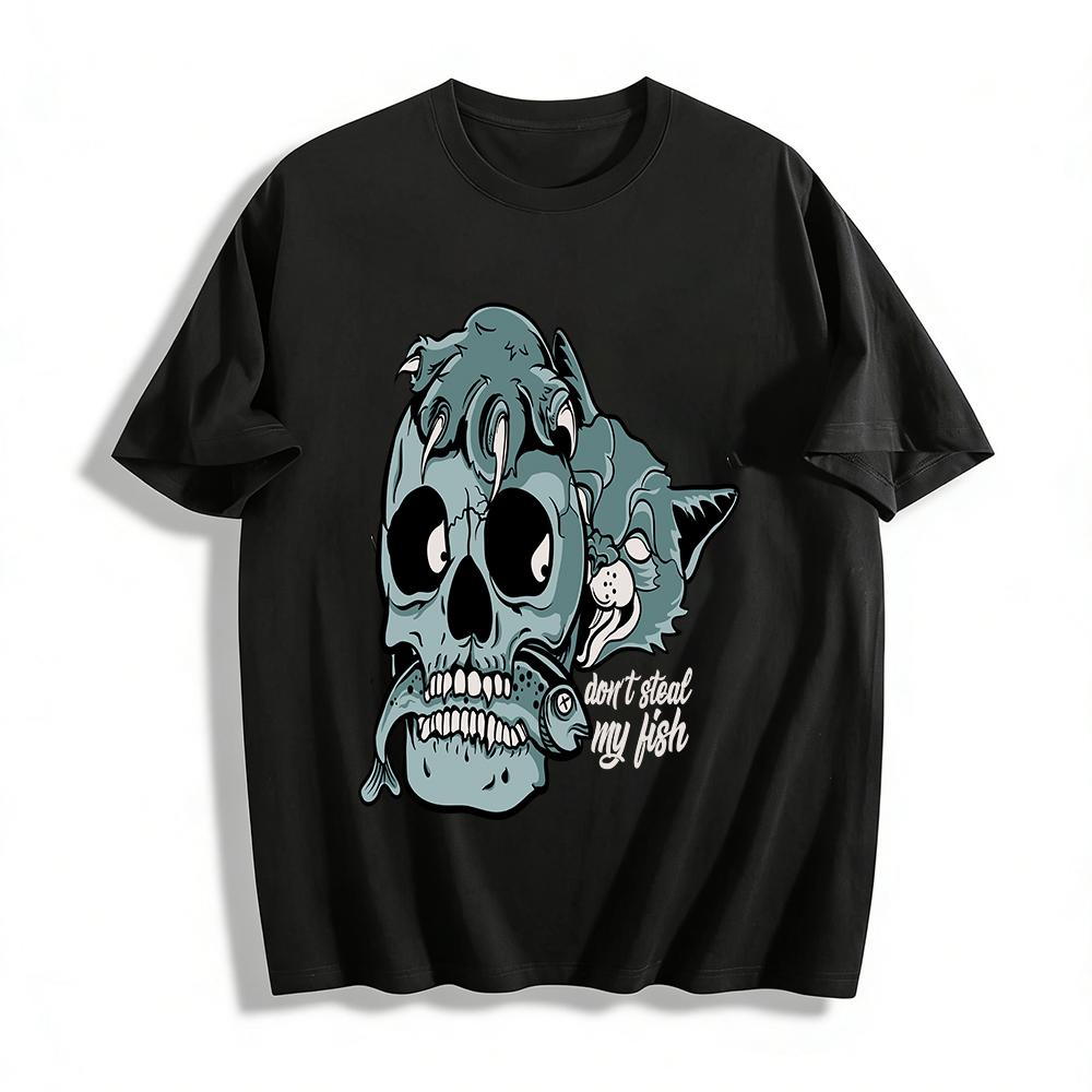 Don't Steal My Fish Skull Cat Print Casual Streetwear T-Shirt Pure cotton T-shirt