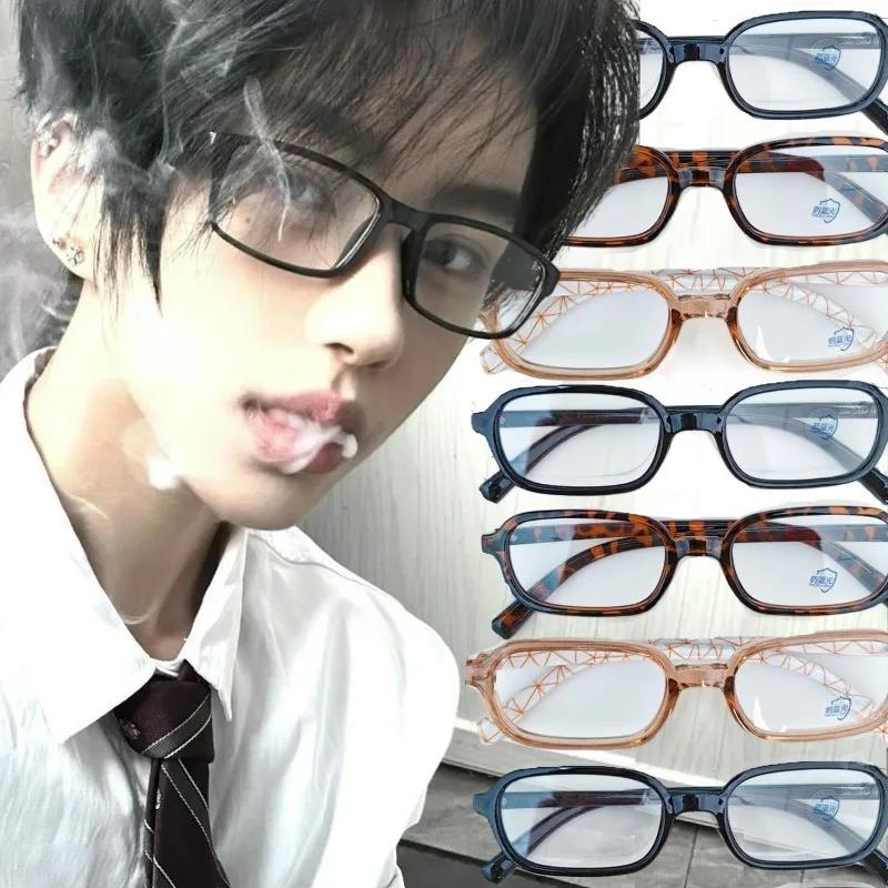 Y2K Printed Square Frame Glasses Women Men Retro Anti Blue Light Trends Eye Protection Eyewear Transparent Leopard Print Glasses