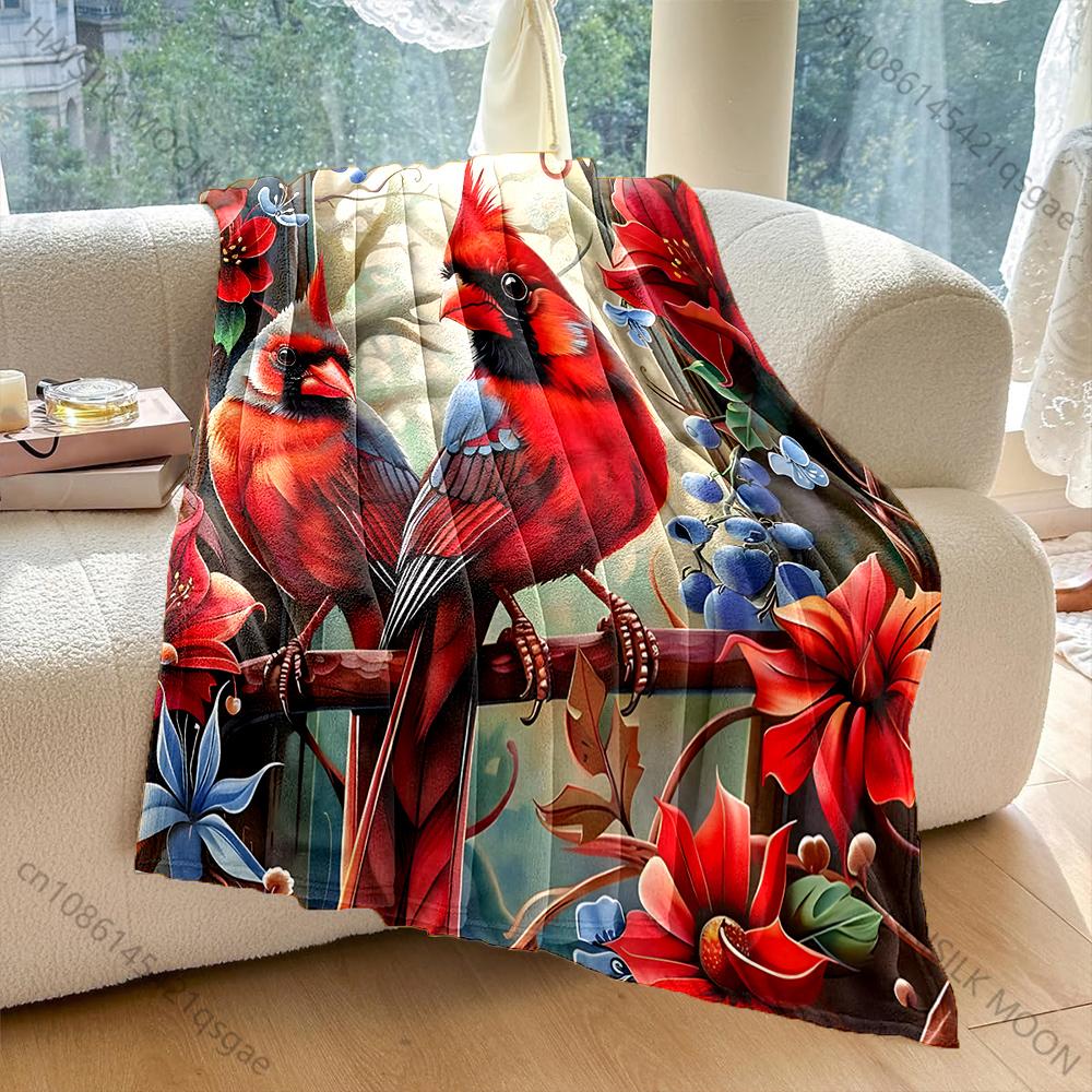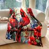 Red Cardinals with Vibrant Flowers Pattern Blanket Flannel Material Soft Warm for All Seasons, Home Outdoor Camping Picnics RV