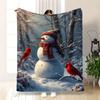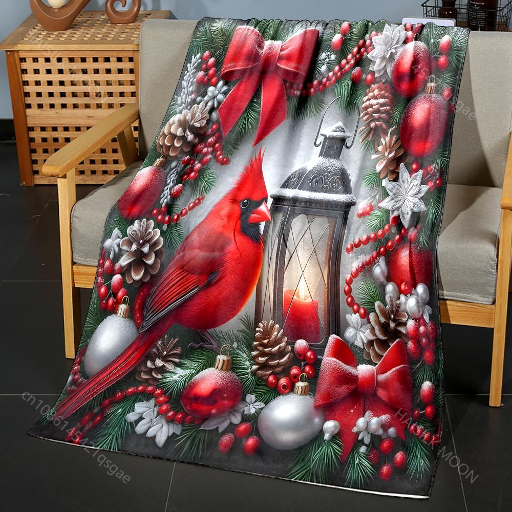 Festive Cardinal with Holiday Wreath Pattern Blanket Flannel Material Soft Warm for All Seasons Home Outdoor Camping Picnics RV