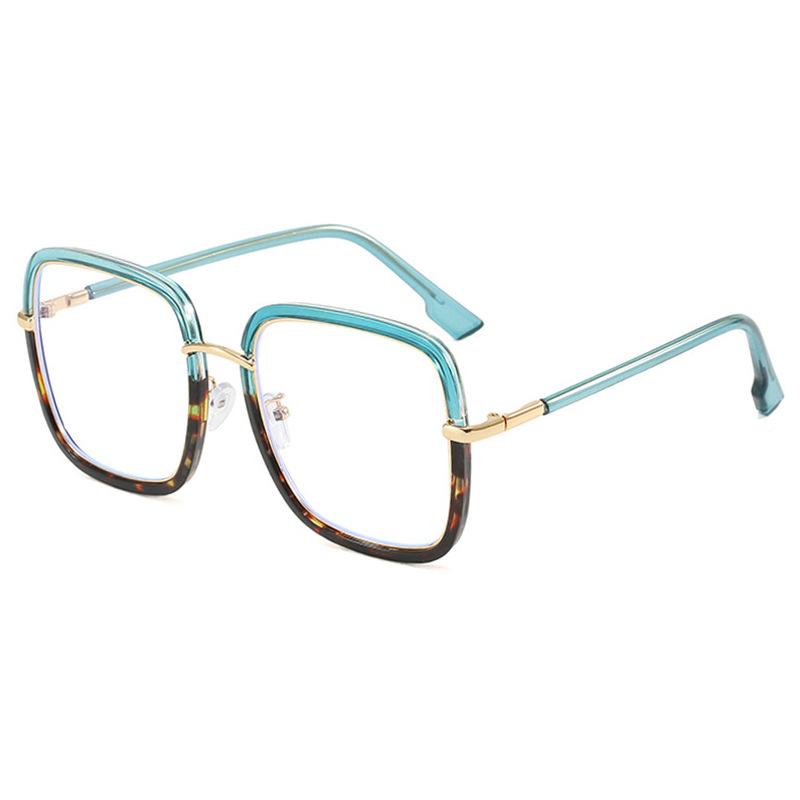 Vintage Büyük Boy Kare Mavi Işık Engelleme Gözlük Kadın Trendy Büyük Çerçeve Yeşil Leopar Gözlük Okuma Bilgisayarı Gözlük