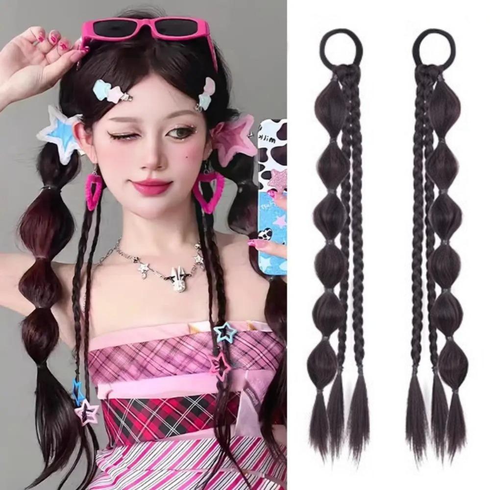 2pcs Double Ponytail Sweet Twisted Pigtails Hairpiece Lantern Braided Ponytails Daily