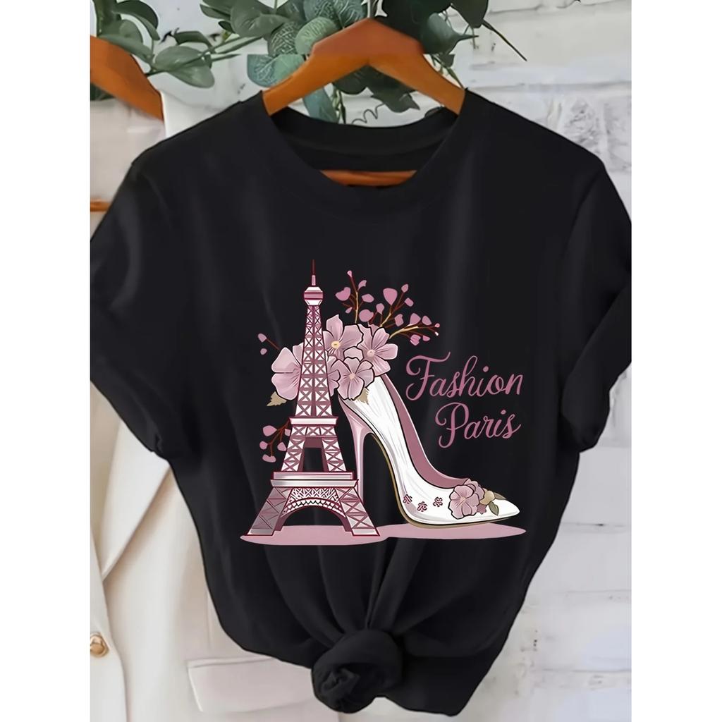 Perfect for Summer Casual Wear Vacation & Outdoor Activities Women'S Vibrant Eiffel Tower Graphic T-Shirt Sleeve