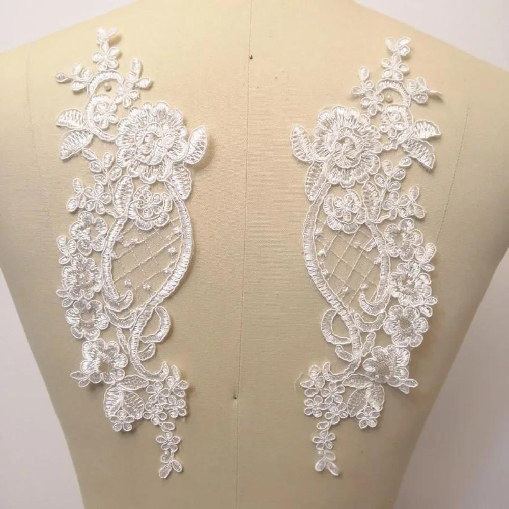 1 pair White Flower Lace Applique DIY Handmade Lace Embroidery Patch Apparel Sewing Collar Sewing Fabrics Clothing Decoration