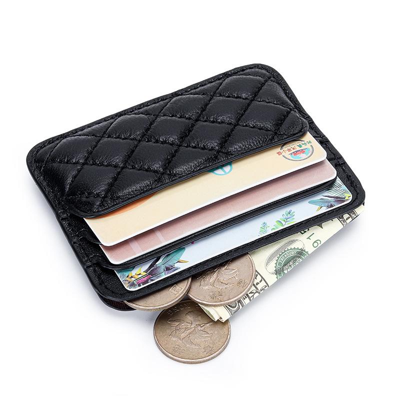 Small Card Bag Women's Sheepskin Embroidered Diamond-grid ID Candy Color Mini Multi-card Holder Genuine Leather Change Purse