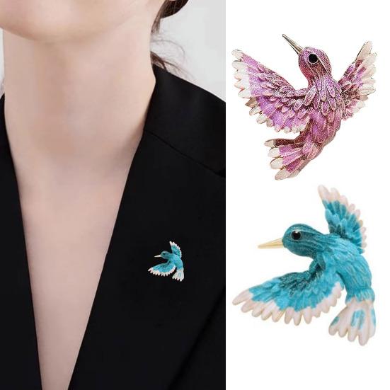 Realistic Three-Dimensional Shape: Designed to mimic a flying hummingbird, this brooch features fine texturing and a lifelike form. The three-dimensional structure adds depth and sophistication, creating an eye-catching statement piece full of charm and atmospheric appeal.